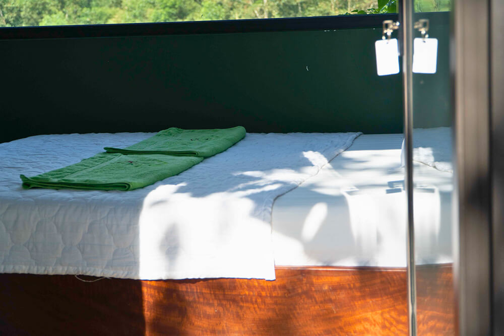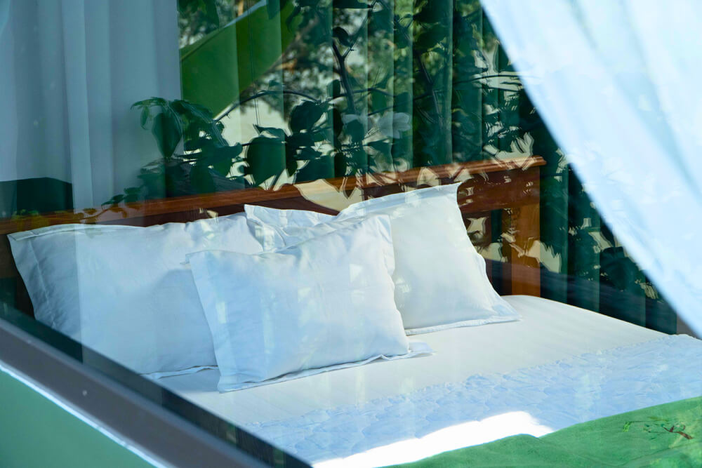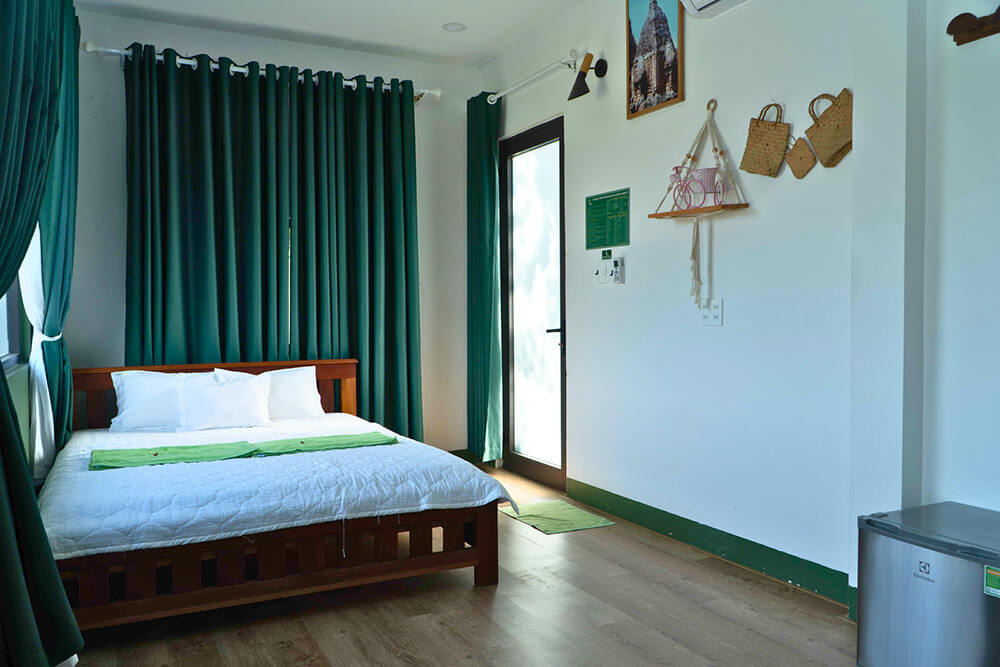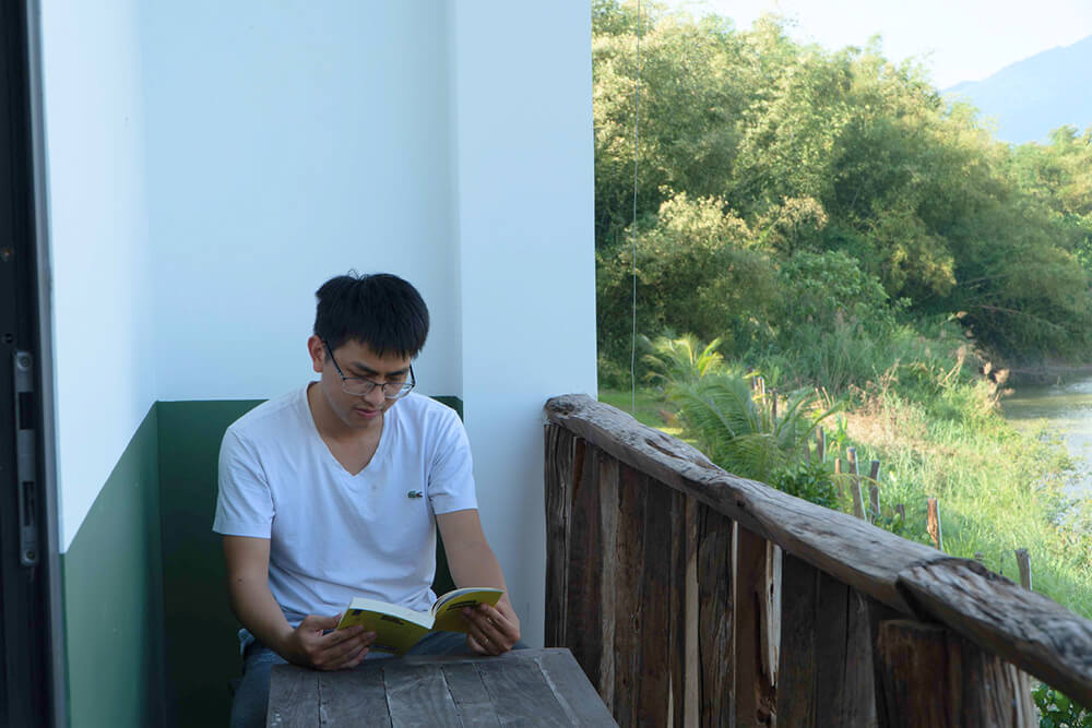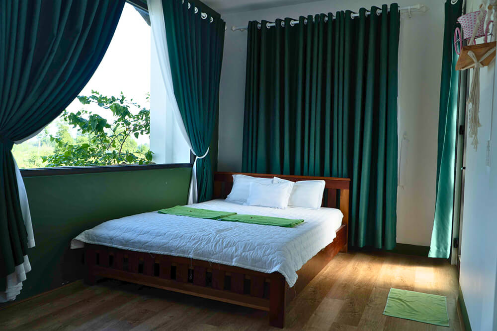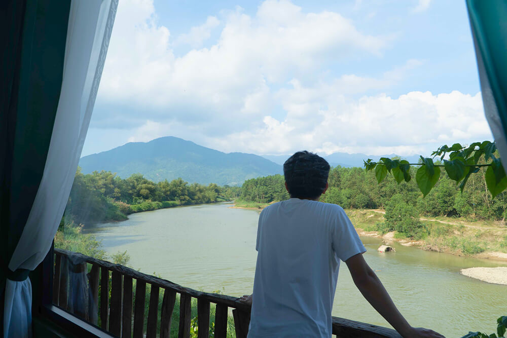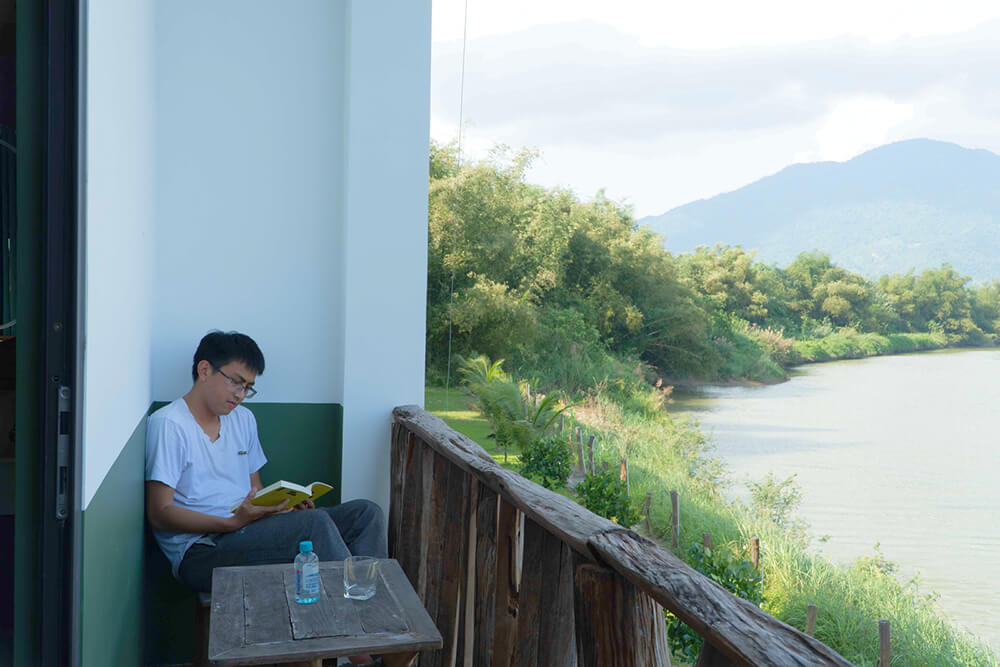 Phòng có tone màu trắng tươi mới, không gian riêng tư, cửa kính lớn vừa đón nắng vừa có ngắm nhìn view sông bên ngoài, rất thích hợp với gia đình nhỏ. Đi kèm ban công hướng sông giúp bạn có phút giây thư giãn nhẹ, hoà mình với thiên nhiên.