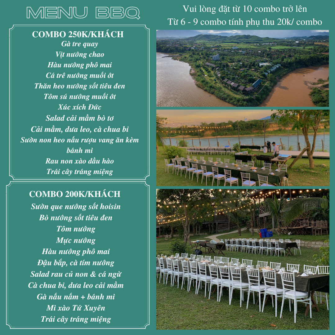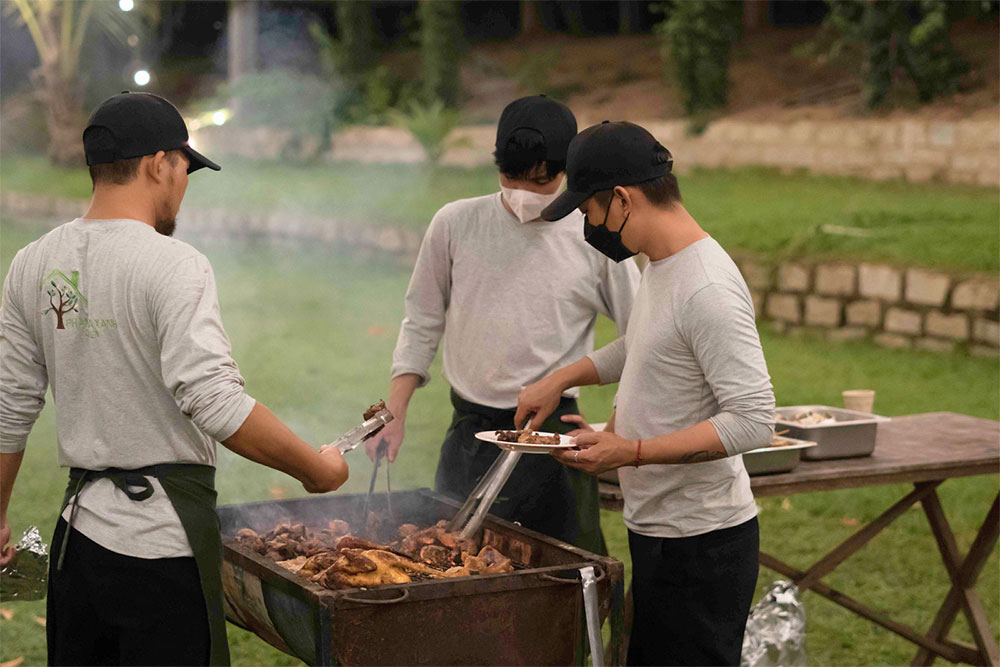 Các tiệc nướng BBQ được PGX chuẩn bị rất chu đáo, rất nhiều món từ trên cạn xuống dưới nước như gà, vịt, thịt, sườn heo, tôm, cá, bạch tuộc, rồi đến rau củ, salat, hoa quả tráng miệng, rất phù hợp cho khách đi theo nhóm, tour hay các công ty, trường học,…