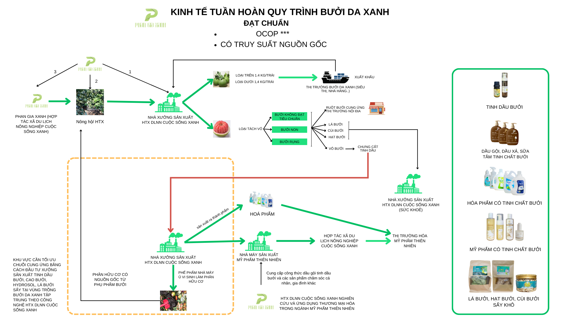Quy trình mô hình kinh tế tuần hoàn bưởi da xanh của Phan Gia Xanh