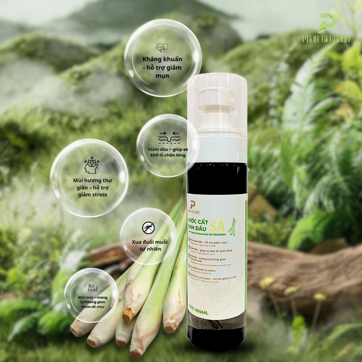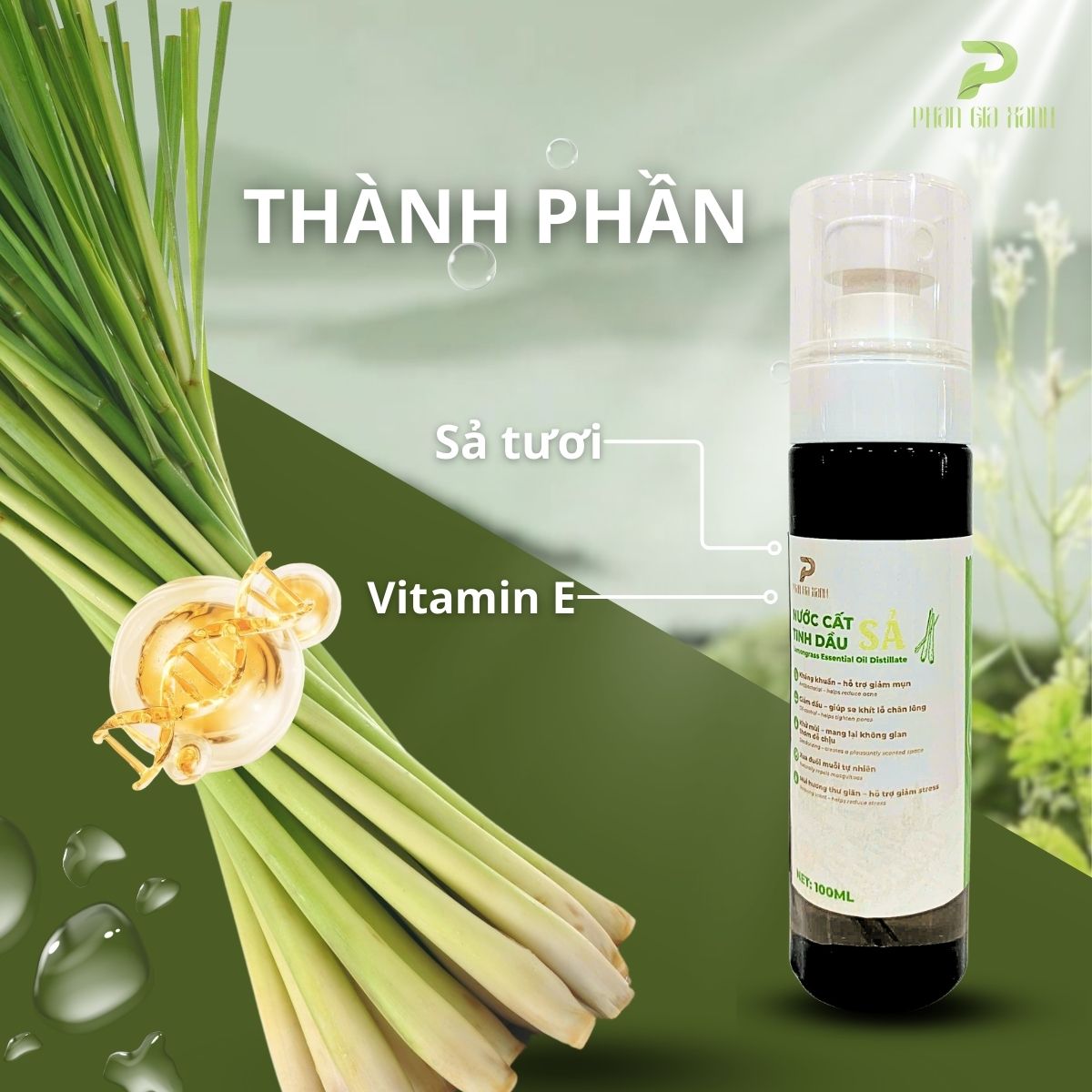 Nước cất tinh dầu sả thiên nhiên (thu từ quá trình chưng cất sả tươi).