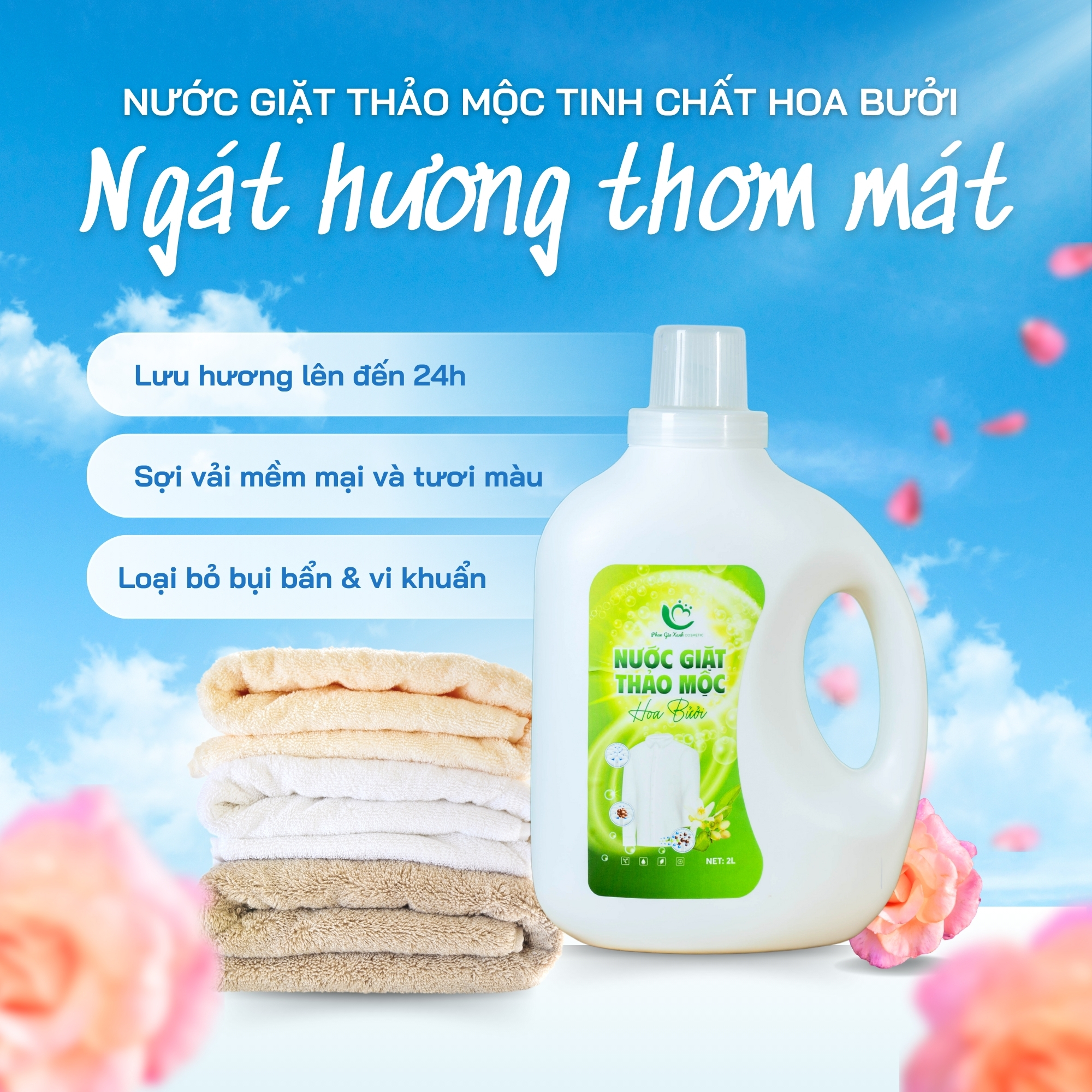 Chiết xuất từ tinh dầu hoa bưởi và enzim sinh học, không chất tẩy mạnh, không paraben – an toàn cho mọi làn da